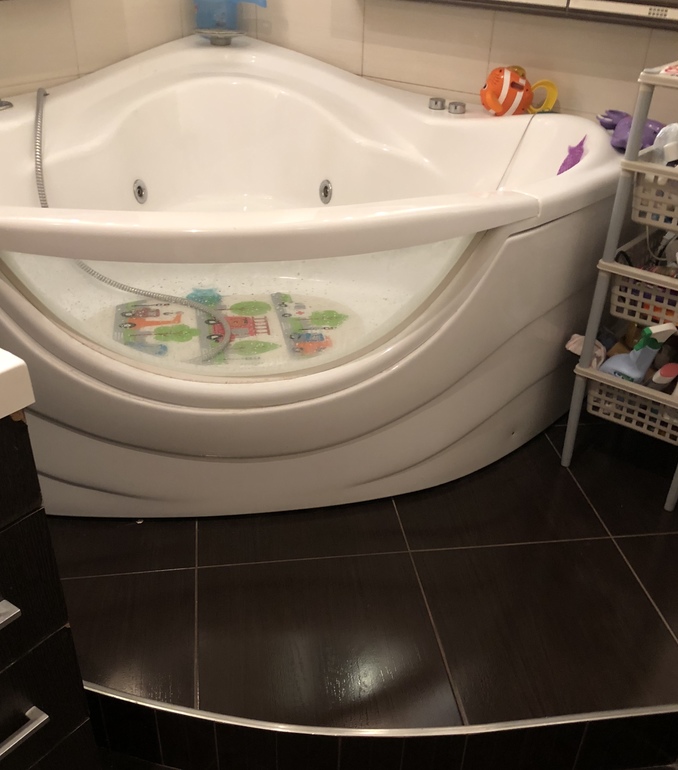 Уже все скащали не делать подиум у ванной - согласна. Сейчас с полиумом - у нас 2 ступенька, пришлось коврик класть- очень опасно. И теперь хотим просто прямую, а не уоловую. И без всяких гидромассажей.
