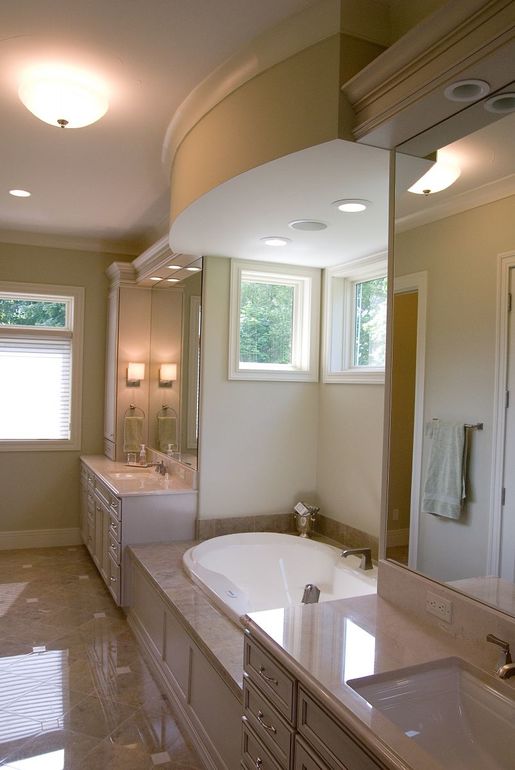 Еще я бы обязательно делала более сложное освещение, 2-3 сценария, чтобы можно было создавать расслабляющую атмосферу при принятии ванны и влючать "рядовое" освещение днем. Кстати, днем, при таком большом окне будет светло и без искусственного света.