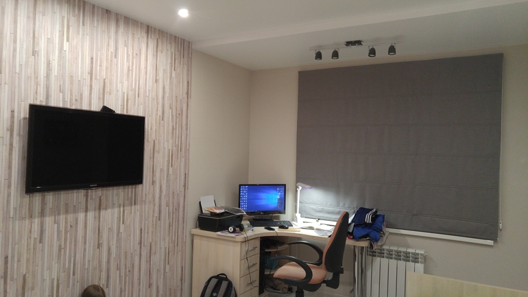 Интерьерное решение детской комнатыСпустя год посде переезда пришла очередь менять мебель в комнате сына.Нужен новый стол и шкаф купэ.Не могу определиться с цветом .Да и дизайн мебели не помешал бы.Я склоняюсь к серому или графиту,еще есть вариан скомбинировать серый с белым.Мебель предназначается для сына 13 лет на вырост.Очень надеюсь на вашу помощь.Стол будет на прежнем месте,а шкаф в свободном углу