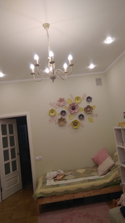 Спасибо! Потолок- натяжной, самый обычный матовый, я как раз и хотела так без лишних деталей и глянца