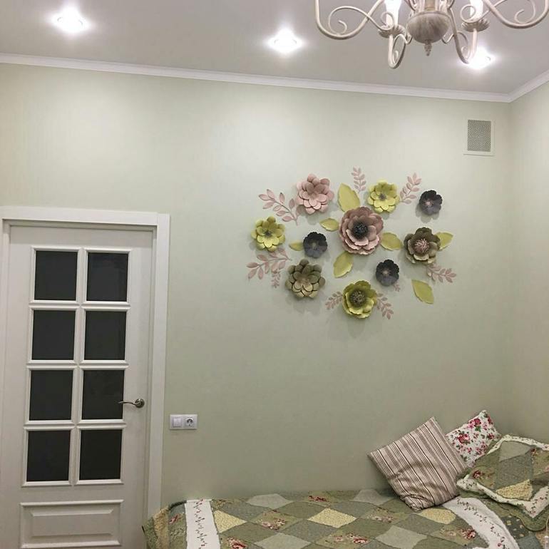 С окончания ремонта прошло уже больше года, а с декором стен все никак не могла определиться. Над кроватью ничего тяжёлого вешать не хотелось, тк стена из гипсокартона. Да и хотелось чего то необычного.