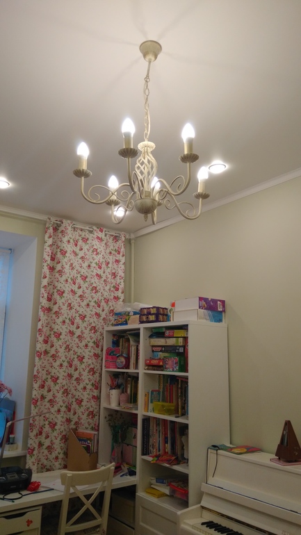 Спасибо! Люстрой довольна, только все собираюсь купить маленькие абажуры в Леруа. Светит хорошо, мягко, но у нас ещё по периметру встроенные лампы идут