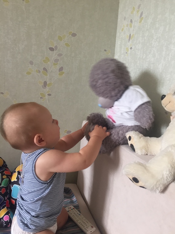 у нас такого цвета обои. пол светло-бежевый, а вот двери и плинтуса как ваш пол. кровать, шкаф, тумбы и комод белого цвета. Люстры пока нет. Покрывала и штор тоже, хочу их одного цвета заказать, какого пока не знаю