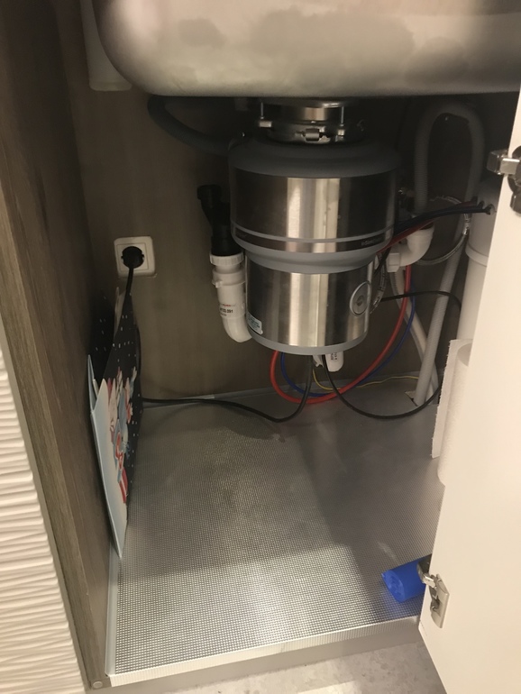 Раковина, смеситель Blanko, мне очень нравятся, штукенция для моющего средства прикольная, тоже от Бланко, приблуда конечно, но мне нравится. Супер приобретение ещё - измельчитель, это была моя блажь, хочу и все, но теперь пользуется вся семья, и как раньше без него жили, очень удобно, из ведра не течёт ничего, очистки не капают на пол, пока их до ведра донесёшь, да и ещё и не шумный попался. В общем, мои рекомендации.