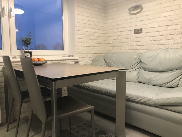 Диван со старой квартиры, торопились переехать, да и деньги уже заканчиваются, есть более важные дыры в ремонте, пока постоит этот, ему лет 5, да и вписался неплохо, хотя я хотела чуть меньше и чтоб был нераскладывающийся.