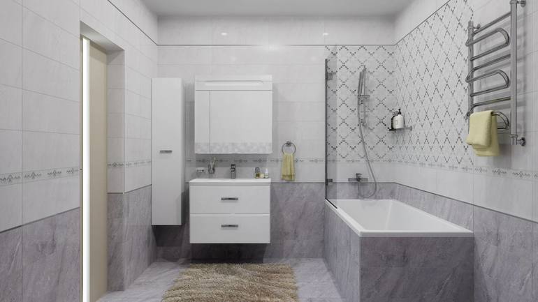 Первая плитка стильная,т.к ванна 150*170,выделила бы чёрной плиткой одну полосу по периметру и выделила бы зону зеркала