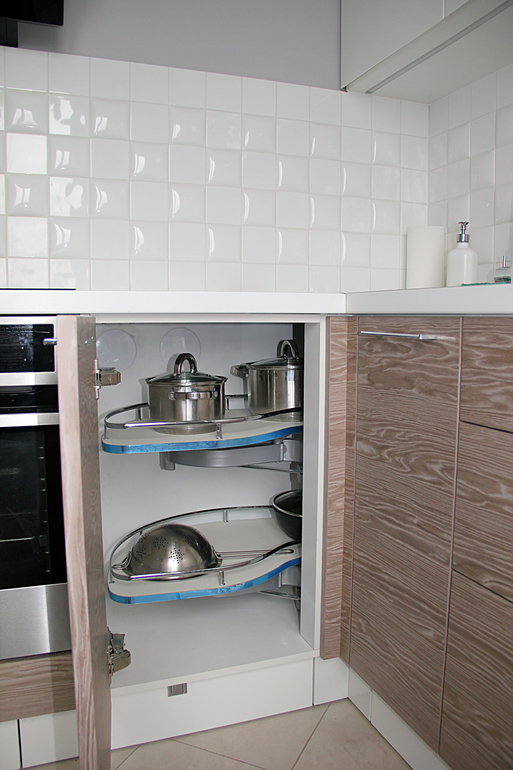 Но теперь встал вопрос: а что там хранить? Кастрюли отпадают, так как они прекрасно хранятся в ящике под варочной панелью.