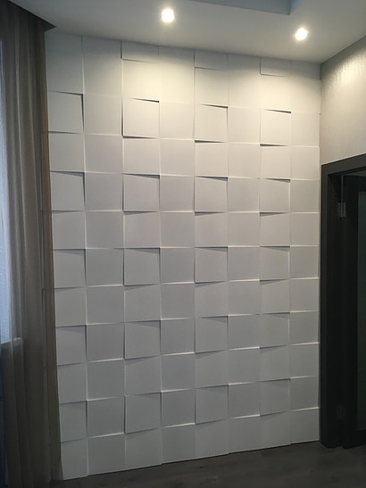ЛИчно мое мнение - не стоит делать такой декор за диваном. 3д стена хорошо смотрится, когда она большая. Не вижу смысла тратить деньги на 3д панели, а потом закрывать их диваном