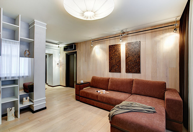 Вот на этой фотографии панно за диваном деревянные 3д панели + подсветка по периметру