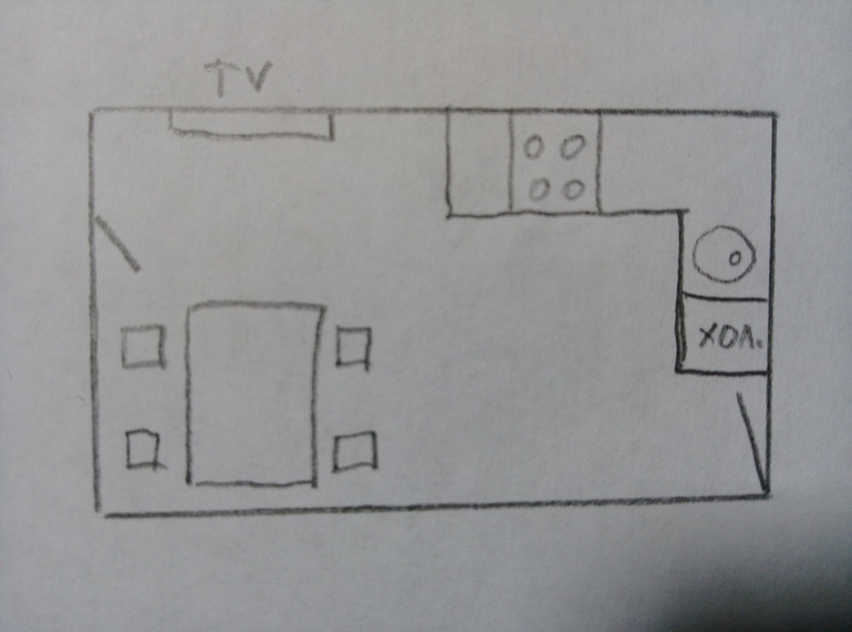 Итак, что есть или важно: 1) кухня 2,55*4,70 м в чистом виде (т.е. никакие трубы нигде не мешают); 2) диван клубу икеа, 144 см; 3) телевизор (32 дюйма, скорее всего, чтоб было ощущение не кухни, а гостиной); 4) семья из 4 человек; 5) гарнитур линейный, 3 метра (нижний ряд всё по 60 см) (угловые кухни крутили ради того, чтобы втиснуть холодильник, но не выходит ничего дельного, к сожалению, но если будет идея, готова слушать).