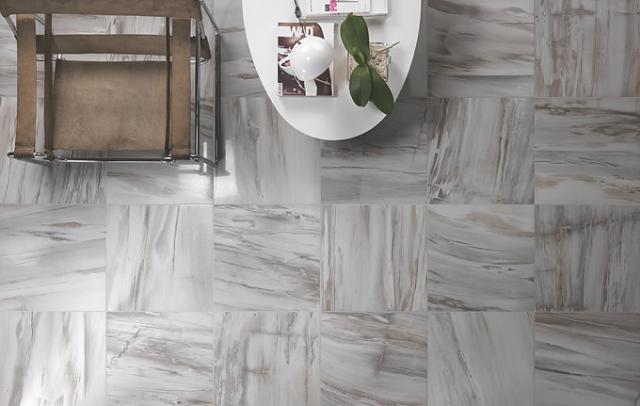 Мне кажется к такому рисунку под мрамор дерево может подойти только серое, по цвету как прожилки мраморные. Ну или еще вариант такой камень