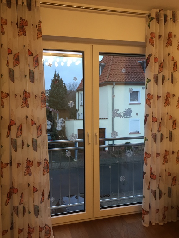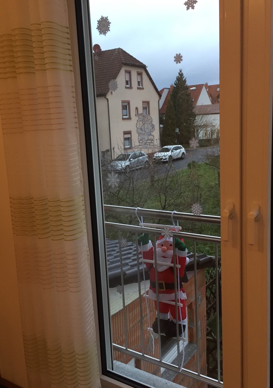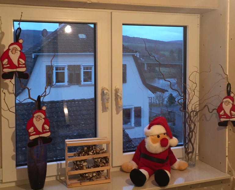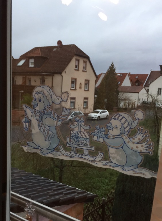 Это окно у сына - тоже с наклейками и залезающем дедом морозом )))