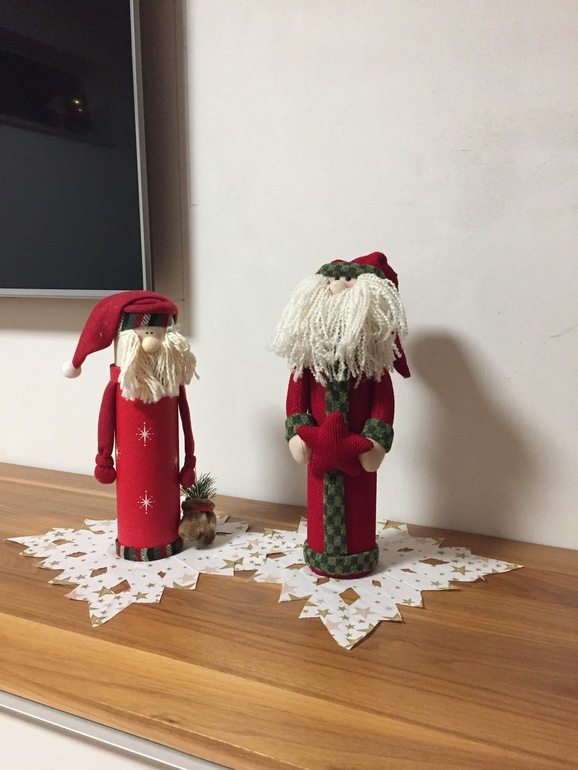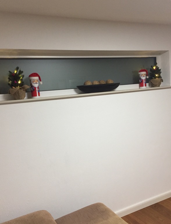 Этих дел морозов поставили на комод. Бетонная стена, где весит телевизор, не готовая ещё. Хотим эту стену выкладывать кирпичом.