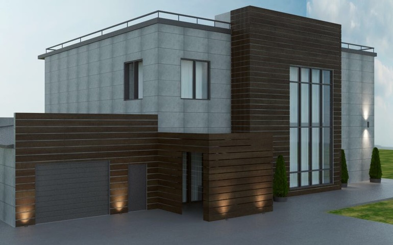 Итак, вот наш фасад, почти готов. На днях поставили все отливы на окна и сняли почти все леса: