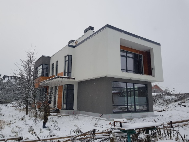 Внутри разложен теплый пол по двум этажам, горячее и холодное водоснабжение, канализация, установлены инсталляции под унитазы, обвязана на 60% котельная. Сейчас ждем систему фильтрации, воздушного отопления и венткороба.