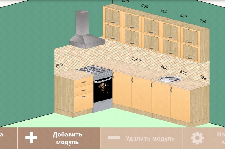 Только навесные шкафы будут без стекол и видятся пошире, может быть по 100 см.