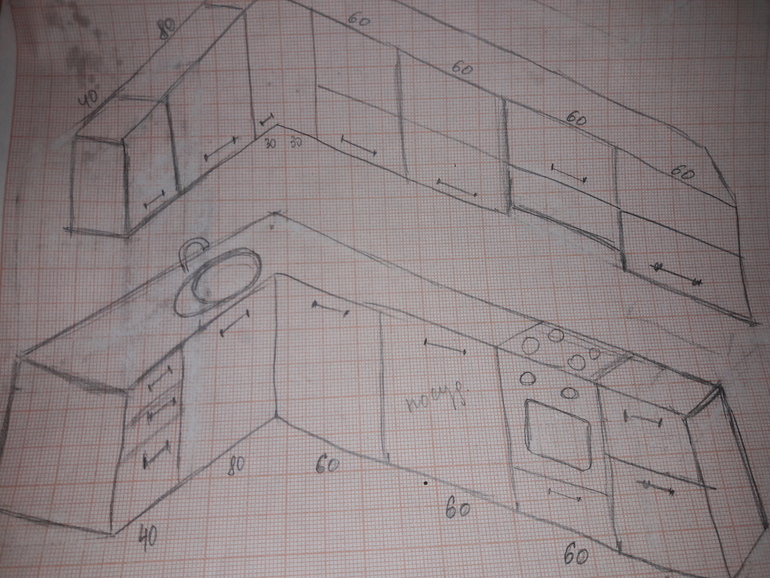 - хочется побольше раковину (может быть двойную), но тогда вообще всё сдвинется.
