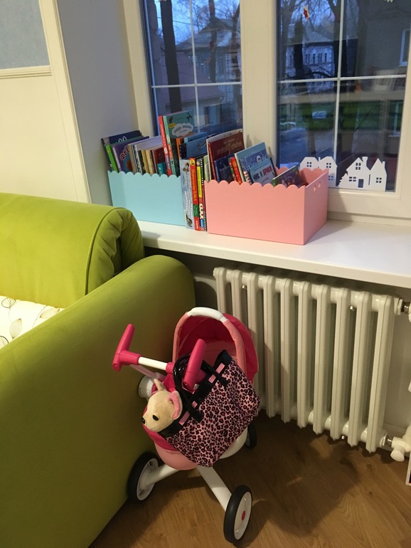 В корзинах любимые мягкие игрушки, красиво рассадить ребенок не может, а корзины это порядок, выше куклы и дельфин, который как тот чемодан без ручки и нести тяжело и выбросить жалко) еще выше свободное творчество рисование и лепка.