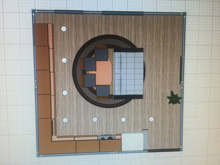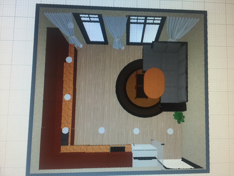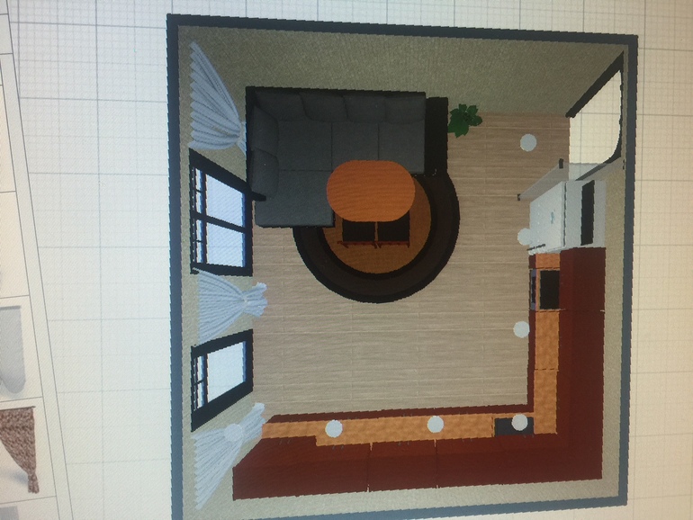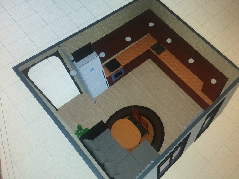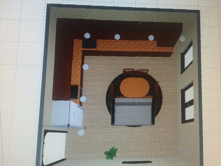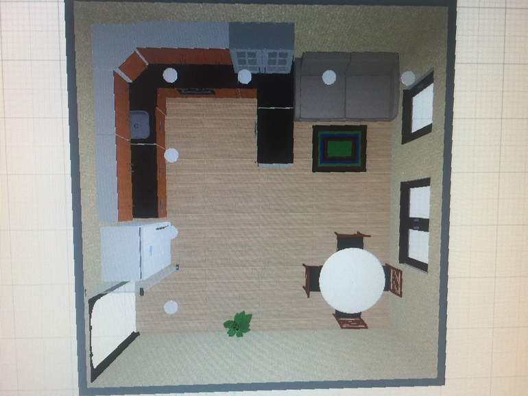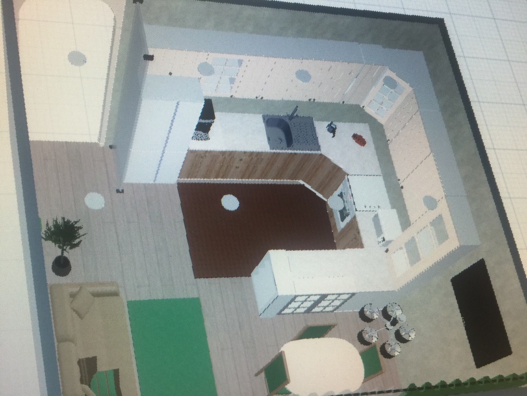 Интерьерное решение кухниДевочки, пожалуйста помогите расставить мебель в кухне. что мы имеем, кухню-столовую длина 4,9м ширина 4,7 м. Имеются 5 вариантов, но самый мой любимый это 1 вариант с островом, но ни как не получается пока уговорить мужа (говорит что не поместится все, хотя я в программе сделала все измерения, и все ОК, но это не аргумент(((() Он предлагает 4 и 5 вариант, мне совершенно не нравится... Я очень хочу сделать по зонам, что бы когда я готовила мне никто не мешал и я соответственно ни кому. При входе слева у нас уже заложена стена (ниша) 77 см. На цвета кухни не смотрите, я хочу всю квартиру в светлых тонах, хоть в этом мы с мужем солидарны.