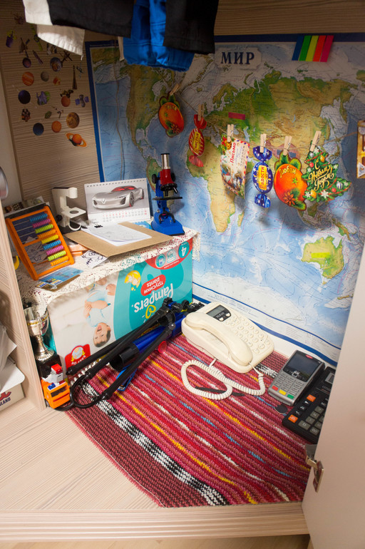 Еще крутая штука - это угловой шкаф (детская от Столплита, серия Дакота). В шкафу у сына... Лаборатория!