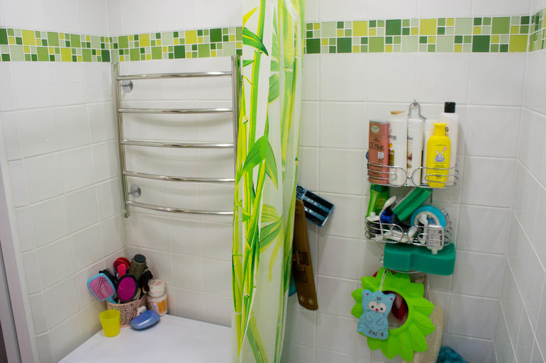 Конечно, на самом деле в ванной тысяча и одна разноцветная фиговинка, куда ж без них, но на мой взгляд они все притаились по углам и закоулкам, и не портят впечатление!