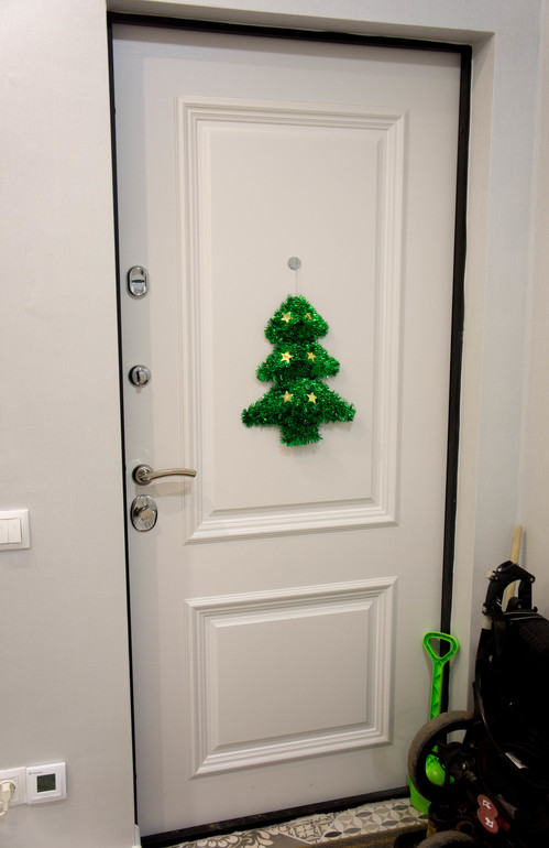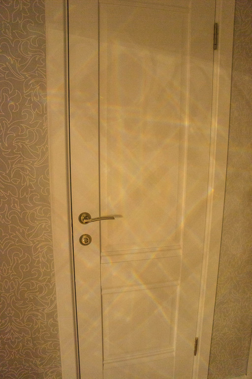 Входная дверь - Стальная Линия "Ливерпуль". Она вообще-то молочная, но мимикрировала под обои и кажется серебристой ))