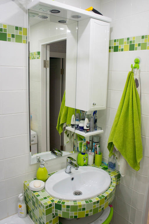 Вопреки всем моим ожиданиям и опасениям, ванная получилась светлая, сочная и совсем не "болото зеленое", а вполне себе жизнерадостная. Утром одно удовольствие в нее заходить! А еще мое зеленоватое лицо на этом фоне прямо пышет здоровьем ))))