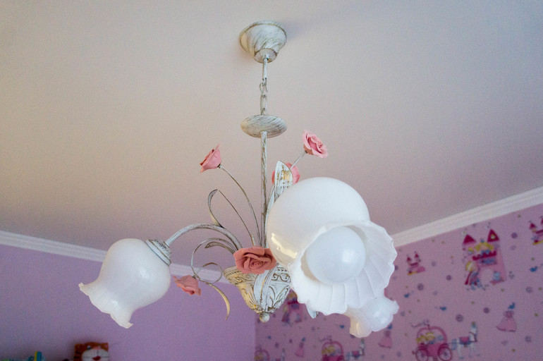 А началось все с люстры, кстати говоря )) Её я купила самую первую, настолько нежной и девчачей мне она показалась, что мимо пройти я не могла! А ведь на момент покупки люстры у нас даже обои старые еще не ободраны были )))