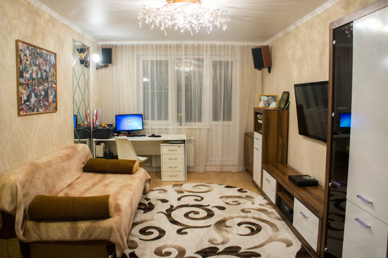 Теперь гостиная, она на половину состоит из старой мебели, много про нее сказать нечего, она такая обычная, бежевенькая )))