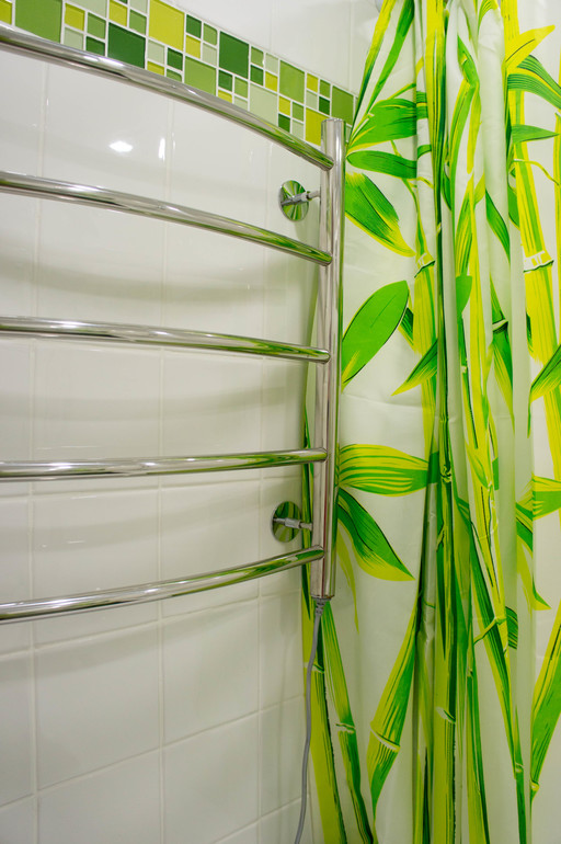 Полотенцесушитель от центрального водоснабжения мы убрали, он получался прямо справа от раковины, я об него все время обжигалась плечом. Да и жара летом от него стояла в ванной сумасшедшая. Поэтому я вняла голосу разума и советам форумчан, мы купили электрический! )