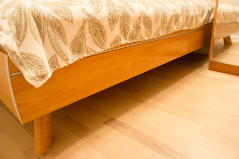 Кстати, кровать изначально была другого цвета. Но купленный шкаф оказался "ольха", пришлось и кровати подстраиваться! Я ее обклеила пленкой из Леруа Мерлен ))