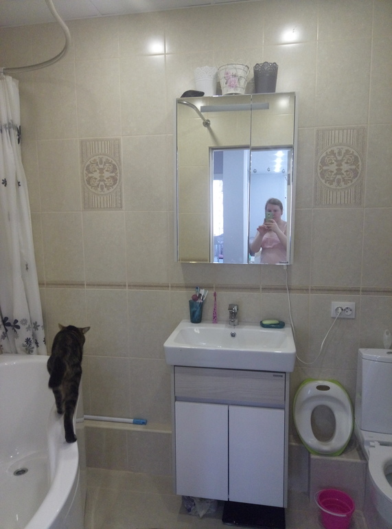 В квартире живем я с мужем , дочь 6 лет, сын 11 мес и кот .Хранение-гардеробная с системой Альгот.