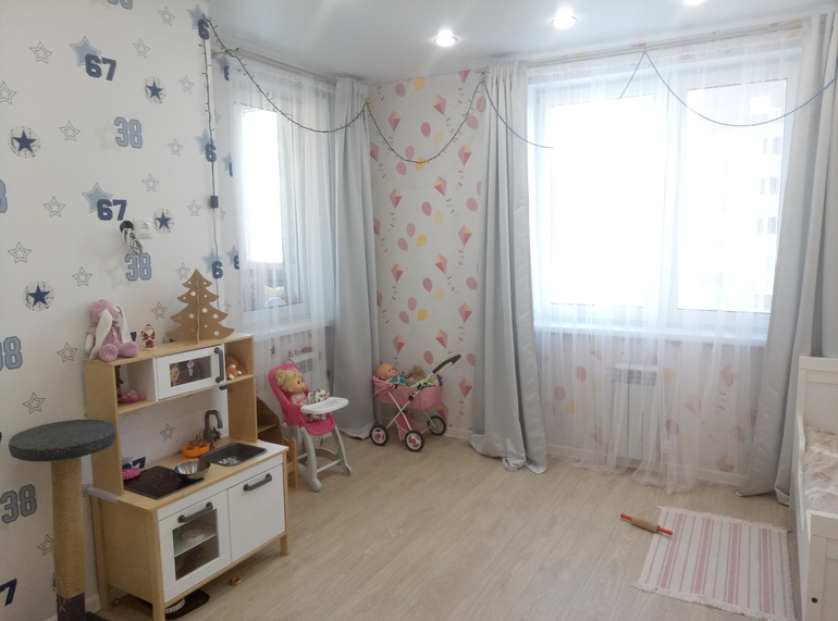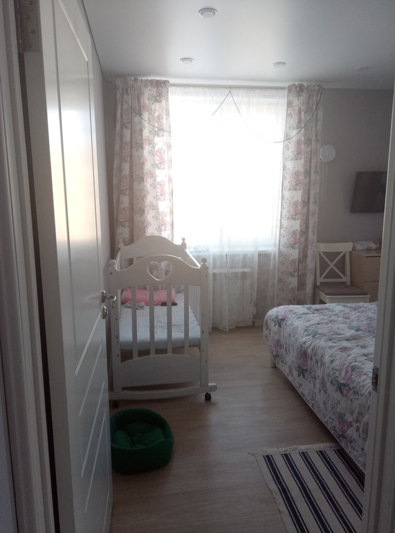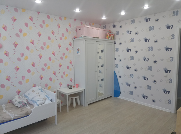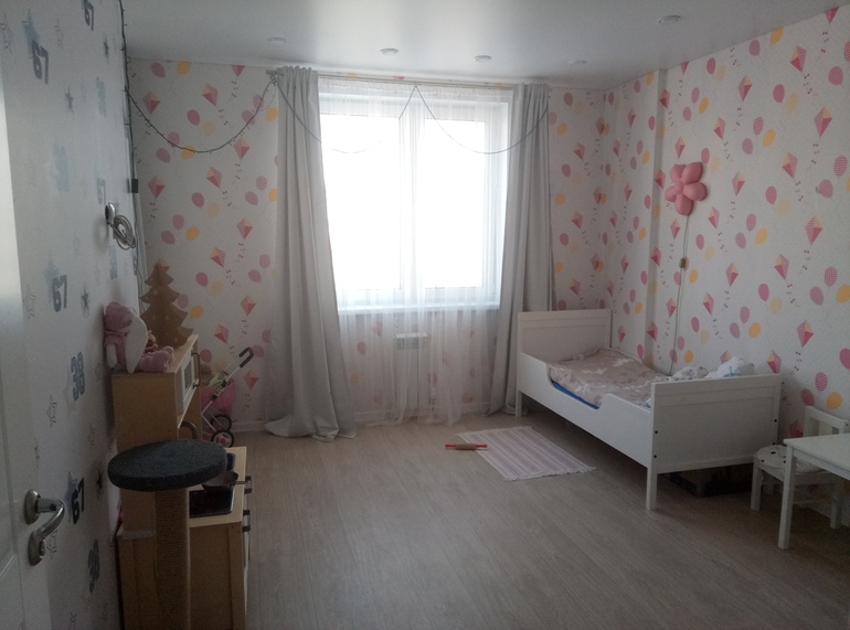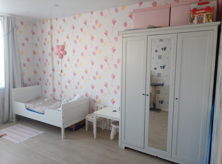 Я правда не поняла где гардероб с альгот (?) и почему-то кровать девочки хочется поставить не у стены, а изголовьем к стене, чтобы с двух сторон воздух был. Вообще когда вся мебель подпирает стены- ощущение не очень ( но это для меня) но в целом очень уютная квартира.