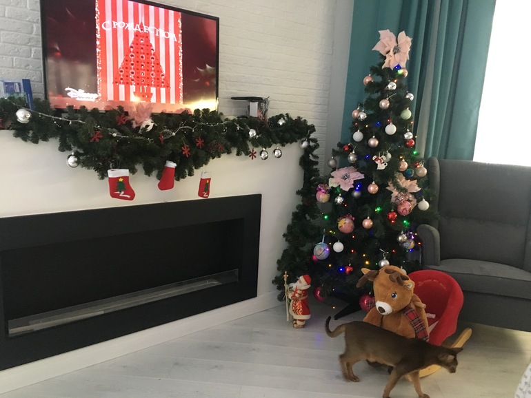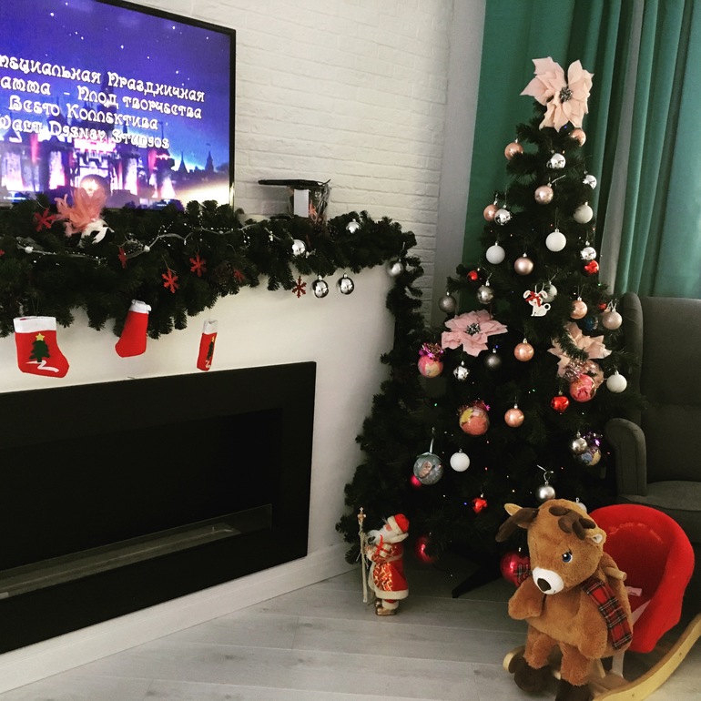 Интерьерное решение гостинойКак только мы задумали поставить камин в квартире, у меня в голове появилась картинка из новогодних фильмов...