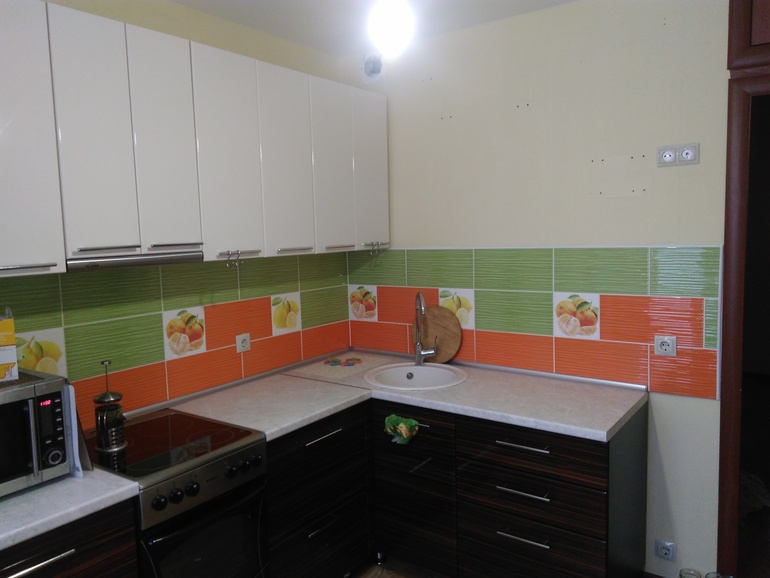 Интерьерное решение кухниСделали нам нашу кухню. Т к не раз тут про нее спрашивала, покажу. В целом мне нравится, но бесит теперь эта плита(( но .. пока так, потом возможно заменим кусок столешки и сделаем встроенную.