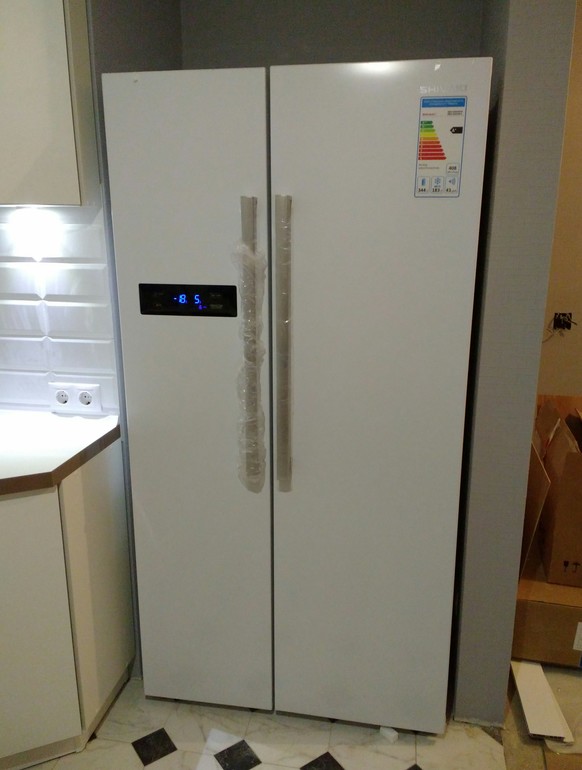 Красиво) не поняла зачем скошенный угол у холодильника, но сам холодильник заставляет забыть все сомнения т вопросы)