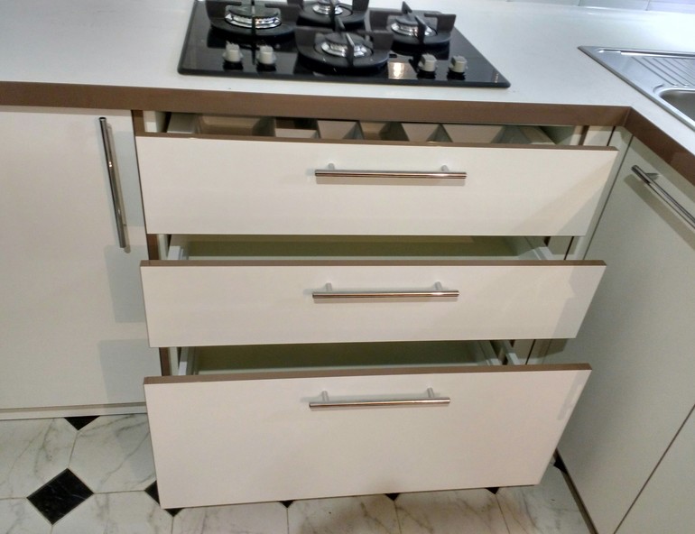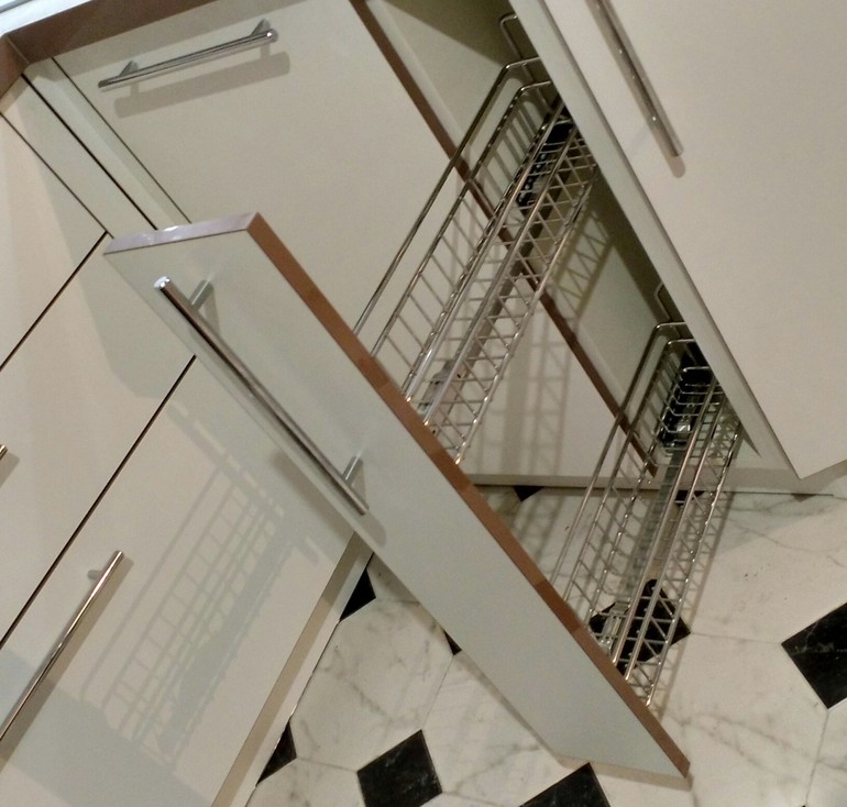 Добрый день. Ну что сказать. Лично я очень довольна кухней. Узкий ящик у колонки конечно не очень полезный но я его для симметрии заказывала.