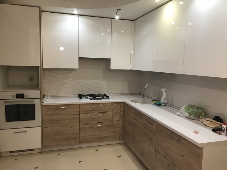 Очень красивая кухня! Скажите, у что за плитка у вас на фартуке? (если это плитка