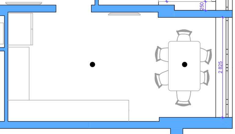 Места расположения люст отметила на схеме кружочками: