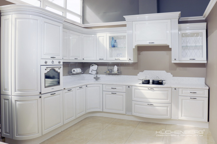 Кухня будет такого план чисто белая (без серой патины), столешница будет серая.
