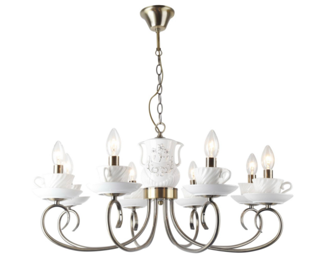 Длина кухни около 6 метров, т.е. между ними примерно 3 метра будет расстояние. Диаметр одной люстры с 8 чашками - 73 см. Есть еще мини-вариант на 5 чашечек, но он как-то куцо смотрится на мой взгляд для нашей большой 18-метровой кухни.
