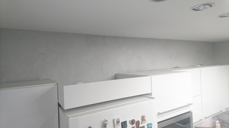 Интерьерное решение кухниДевочки, поделитесь мнением, советами, как лучше сделать, совсем запуталась.Сомнения в варианте . или до потолка 90-92 см, так вроде красивее, но шкафчики будет под сушку-2 по 45 см, далее 52 см, и 52 см у холодильника, это удобно?, или 72 см делать в высоту, и ширина по 70 и 65 слева...что лучше,удобнее, и красивее. может у кого-то что-то подобное есть? еще,технику планирую белую и столешницу белую. фартук на эскизе не тот, на самом деле мозаика. в первом варианте вытяжка белая наклонная