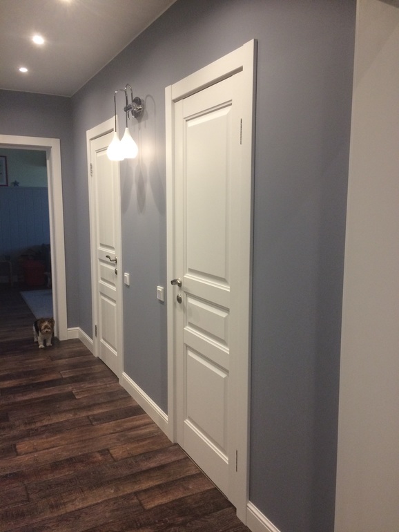 Мы ставили profile doors, у нас в цвете капучино, но там были белые и ещё молочного оттенка - очень красивые. Качеством очень довольны, все кто приходит сразу спрашивают про двери. Цена одной штуки вышла примерно 15000