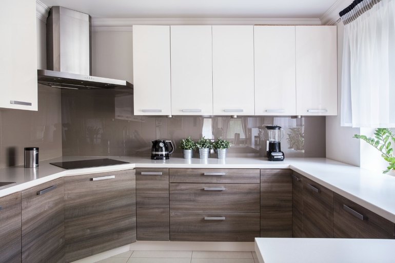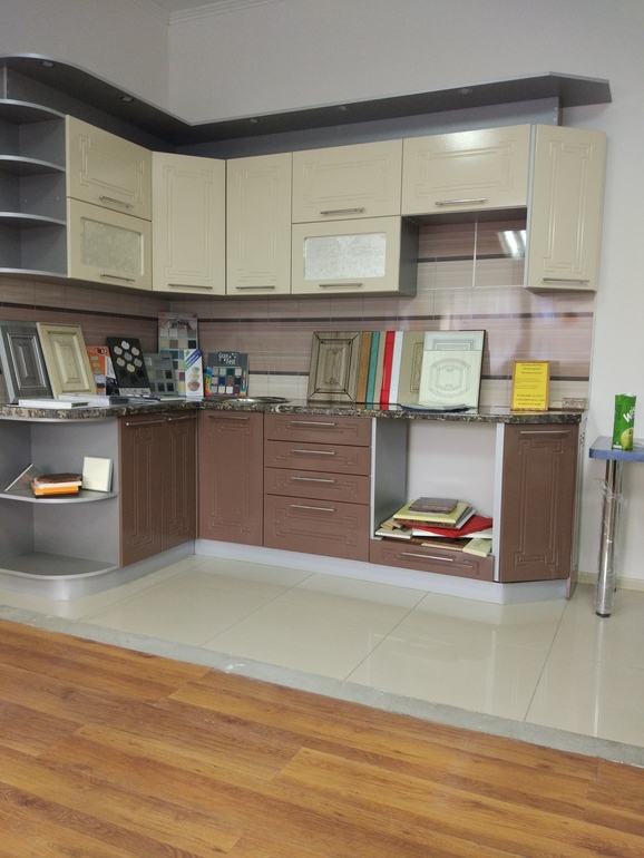 Заказали кухню из пластика , верх беж ,а низ молочный шоколад.