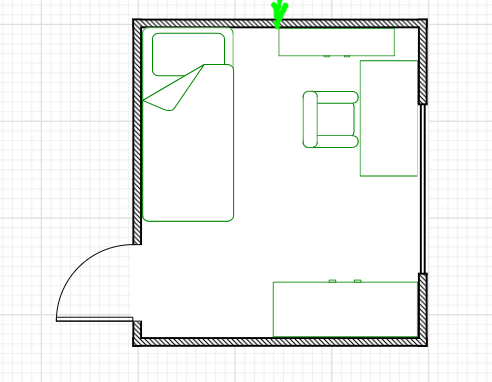 Стена с рисунком предполагалась вот тут в изголовье дивана (зеленая стрелочка), часть позже будет закрыта стелажом для игрушек и книг.