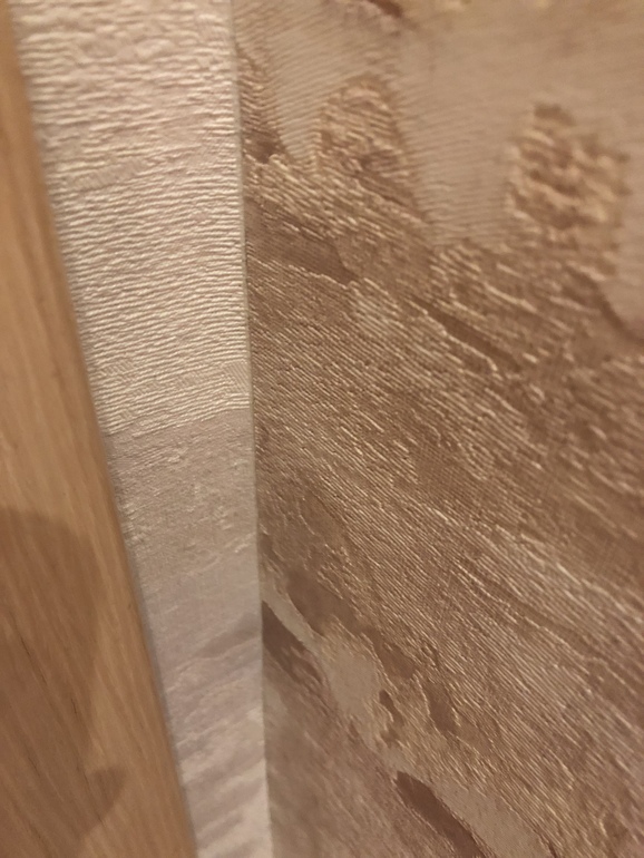 Муж предложил со стороны кухни сделать окантовку проема по обоям наличниками. Для того чтобы хотя бы эти углы не затерлись быстро. А со стороны диванной зоны оставить просто проем без обналички. Но опять возникнет вопрос стыка 2 видов обоев на углу.