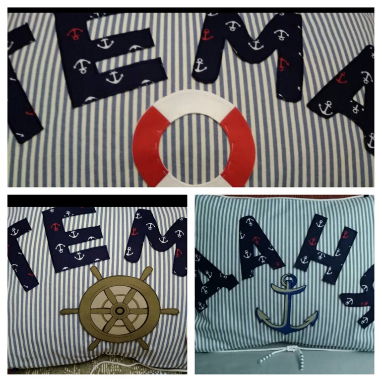 Делаю подушки у покрывалу одна подушка будет спасательным кругом, а вторая не могу выбрать.. якорь или штурвал? Что посоветует? Как лучше будет?