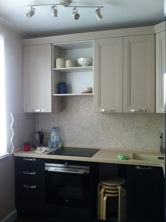 Квартира хоть и маленькая (типовой дом в Митино) но получилась милой и уютной. Подвели только строители, которые были "от заказчиков" и уровень их исполнения оставлял желать лучшего. Работа с дорогими материалами ответственная и требует внимания, но в данном случае докупали некоторую плитку поштучно из-за кривых рук (сколы, трещины, кривая резка), фартук заставила снимать 2 раза 🙄 а про покраску стен молчу, я бы и то ровнее покрасила (