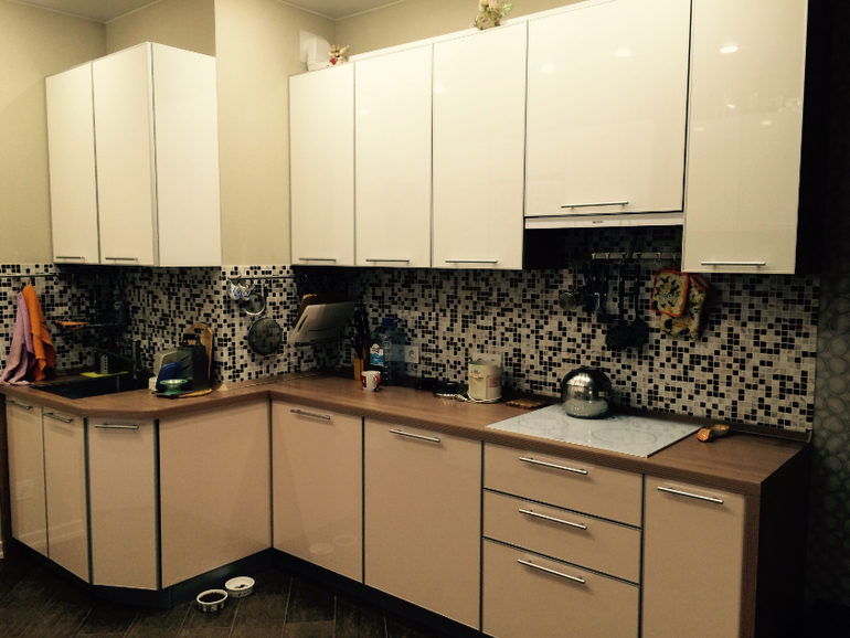 2.Модель Бренда+Анастасия-пластик +ПВХ, ящики тандембоксы-с доводчиками полного выдвижения, столешница из искуственного камня!! входит в стоимость..Размер 2400*2120, с барной стойкой зонированной, можно часть по стене2120 убрать ,до 1220мм. Цена=65000р