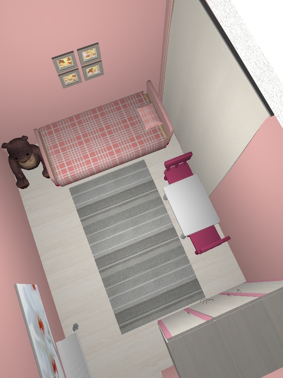 Вместо \рабочего стола, действительно, пока можно маленькие столик, да и кроватку можно пока в любом дизайне, даже более детскую. Однако мне нравится ваш "принцессин" вариант кровати, его тоже можно обыграть, сделав более "детским", но и при этом не понадобится менять через 4 года.